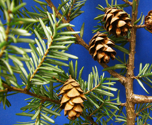 Description botanique : Provenant d’Amérique du Nord, la pruche pousse en abondance dans les milieux humides. Caractérisé par son volume (pouvant atteindre les 30 mètres de haut et 100 mètres de diamètre), cet arbre reste spécial par sa ramure à la fois large et conique. Il est constitué des branches flexibles et grêles ainsi et de racines très étendues. Son écorce a tendance à s’écailler durant le jeune âge de l’arbre. A l’âge mûr, celle-ci est constituée des grandes crêtes aplaties. Obtenue par distillation des rameaux et des aiguilles, l’huile essentielle de pruche est constituée d’Esters, de Monoterpènes, de Monoterpénols, de Sesquiterpènes, de Cétones, d’Oxydes et de Phénols.