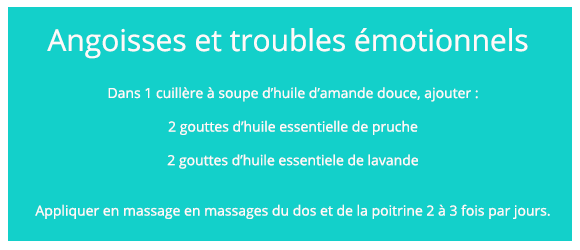 Dans 1 cuillère à soupe d’huile végétale de callophyllum, ajouter 2 gouttes d’huile essentielle de pruche.